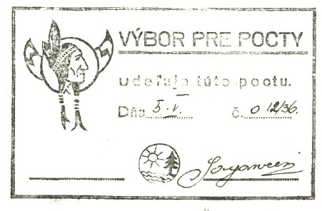 V letech 1922-1928 pocty udílel náčelník. Výbor pro Pocty vymyslel M. Seifert v roce 1925 (kdy vydal Svitek březové kůry) pro konkurenční Ligu pro výchovu přírodou, ve které vedl Výbor Karel Langer - Juraj. Ve stejnou dobu se také začaly nosit šerpy. Od podzimu 1928 došlo ke sloučení obou lig.